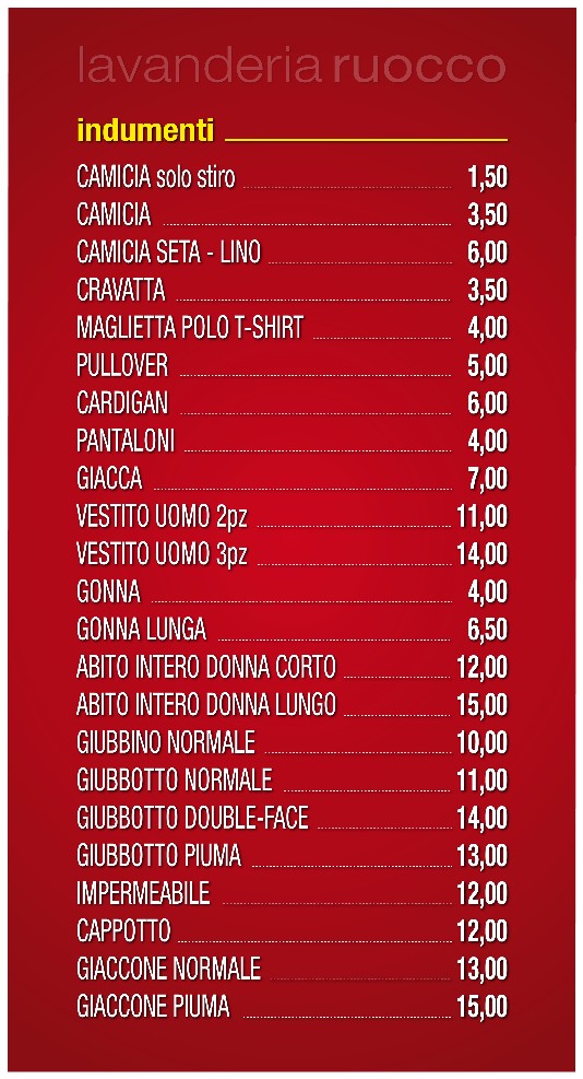 LISTINO - Lavanderia Ruocco
